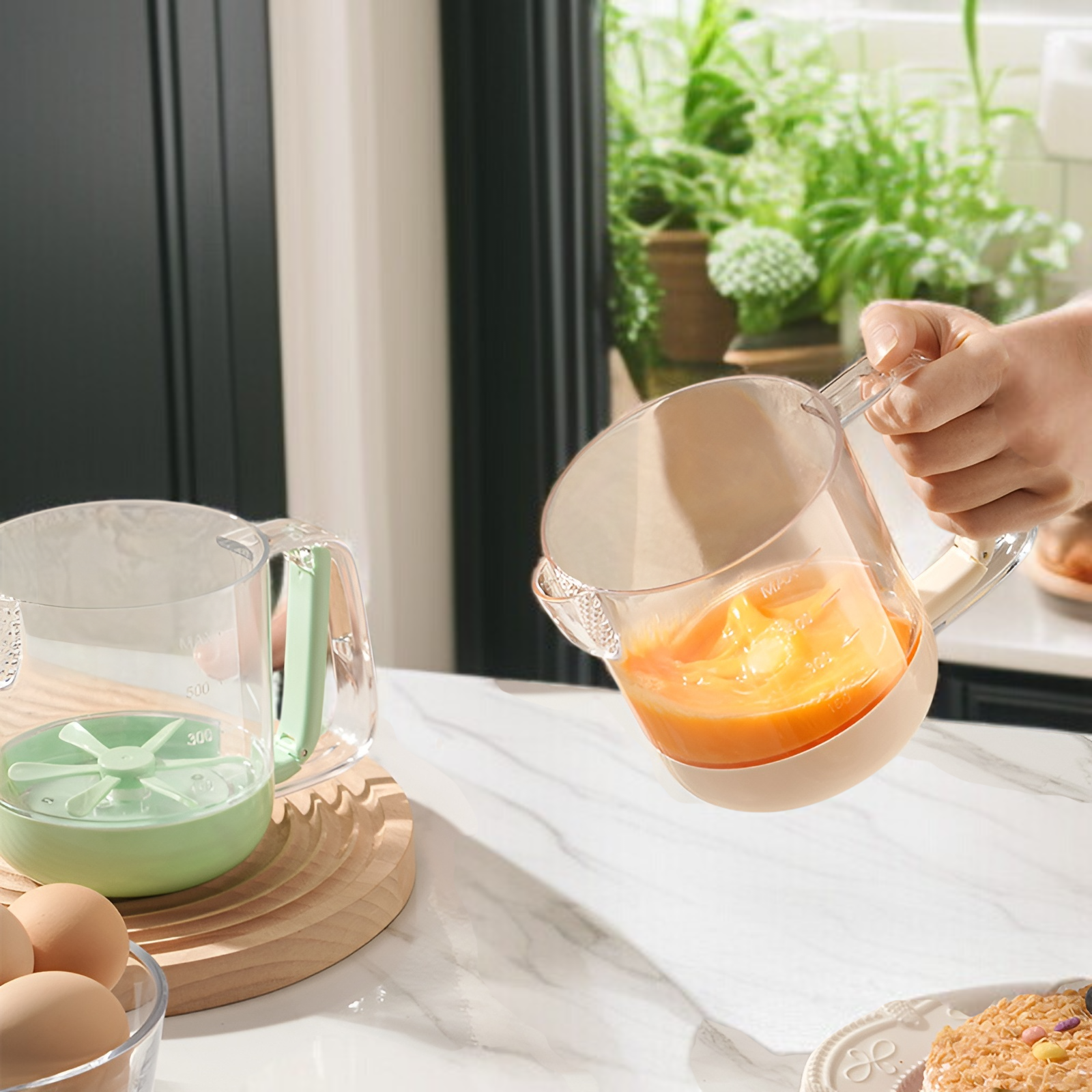 多機能ブレンダー卵ミキシングカッププロテインパウダーミキシングカップスケール付き片手操作便利家庭用卵ビーター半自動卵ビータークリーム攪拌カップ大容量一体型お手入れ簡単