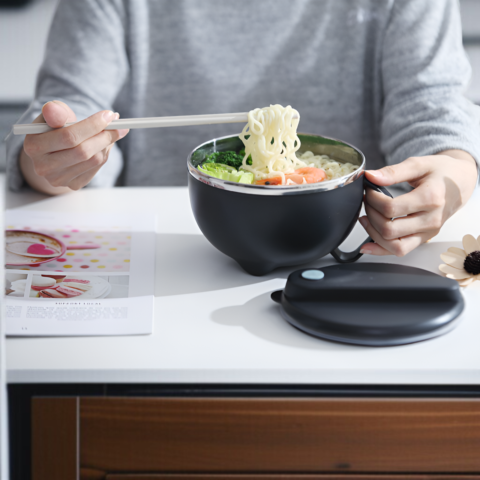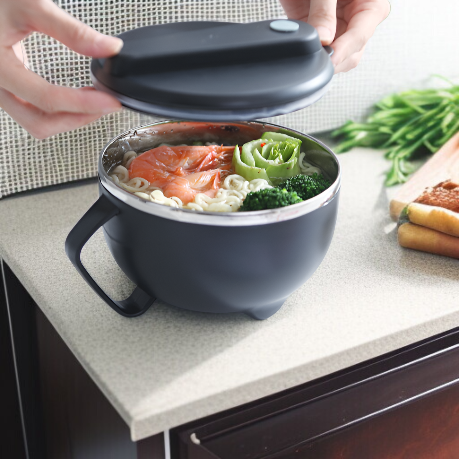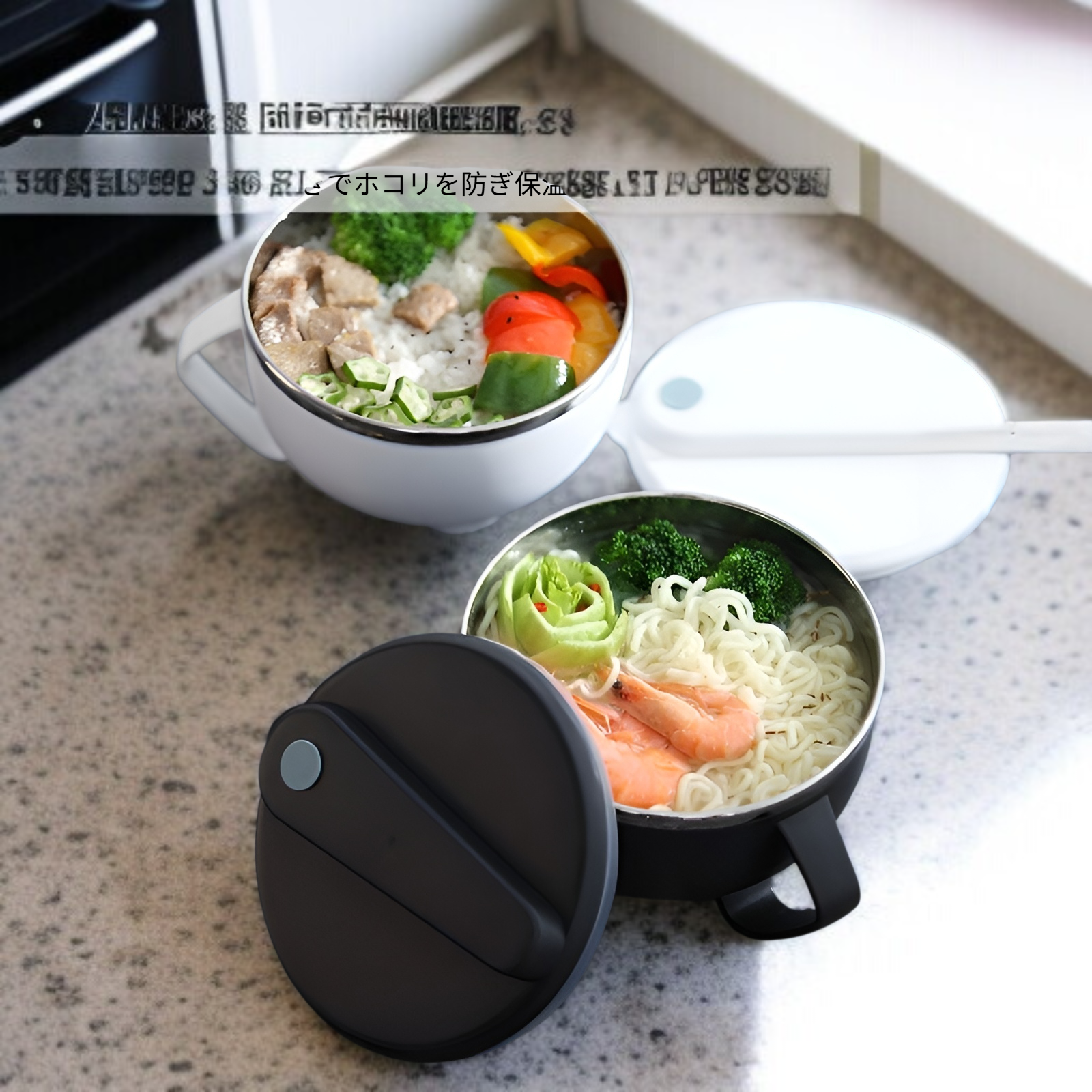 304ステンレス鋼インスタントラーメンボウル蓋付きシングル寮学生ランチボックスオフィスワーカーポータブルランチボックスランチボウル